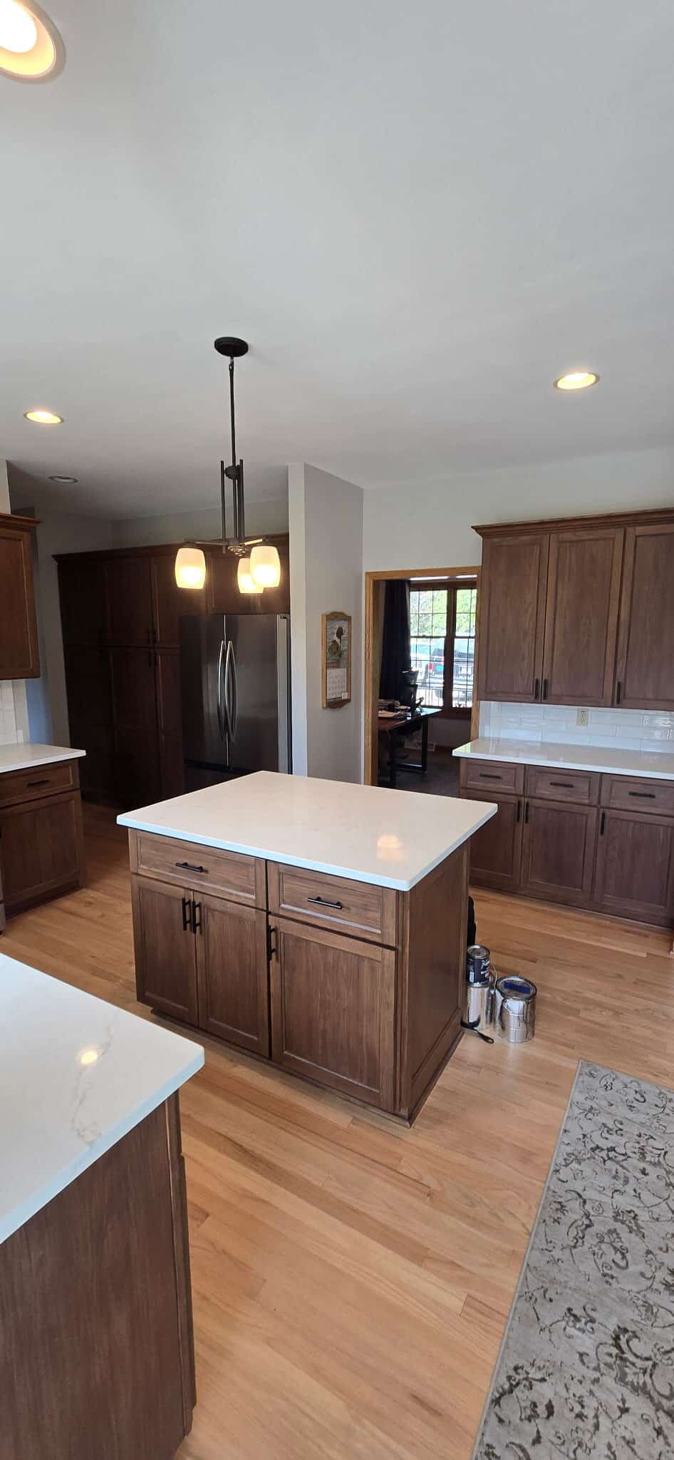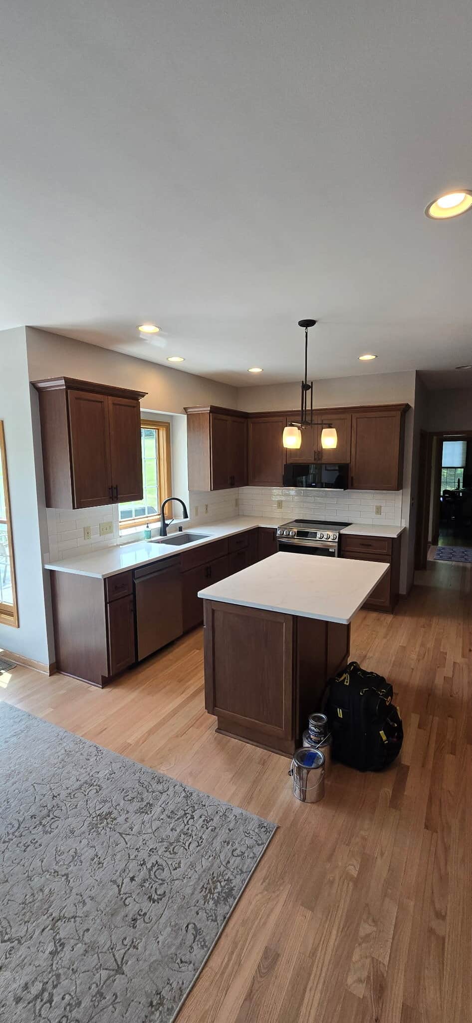 This project showcases why cabinet refinishing in Brookfield, WI is such a valuable service for homeowners who want to preserve the warmth and beauty of their wood cabinetry. The ability to blend new installations with existing woodwork is rare, but itโs what makes Colorwheel Painting stand out.